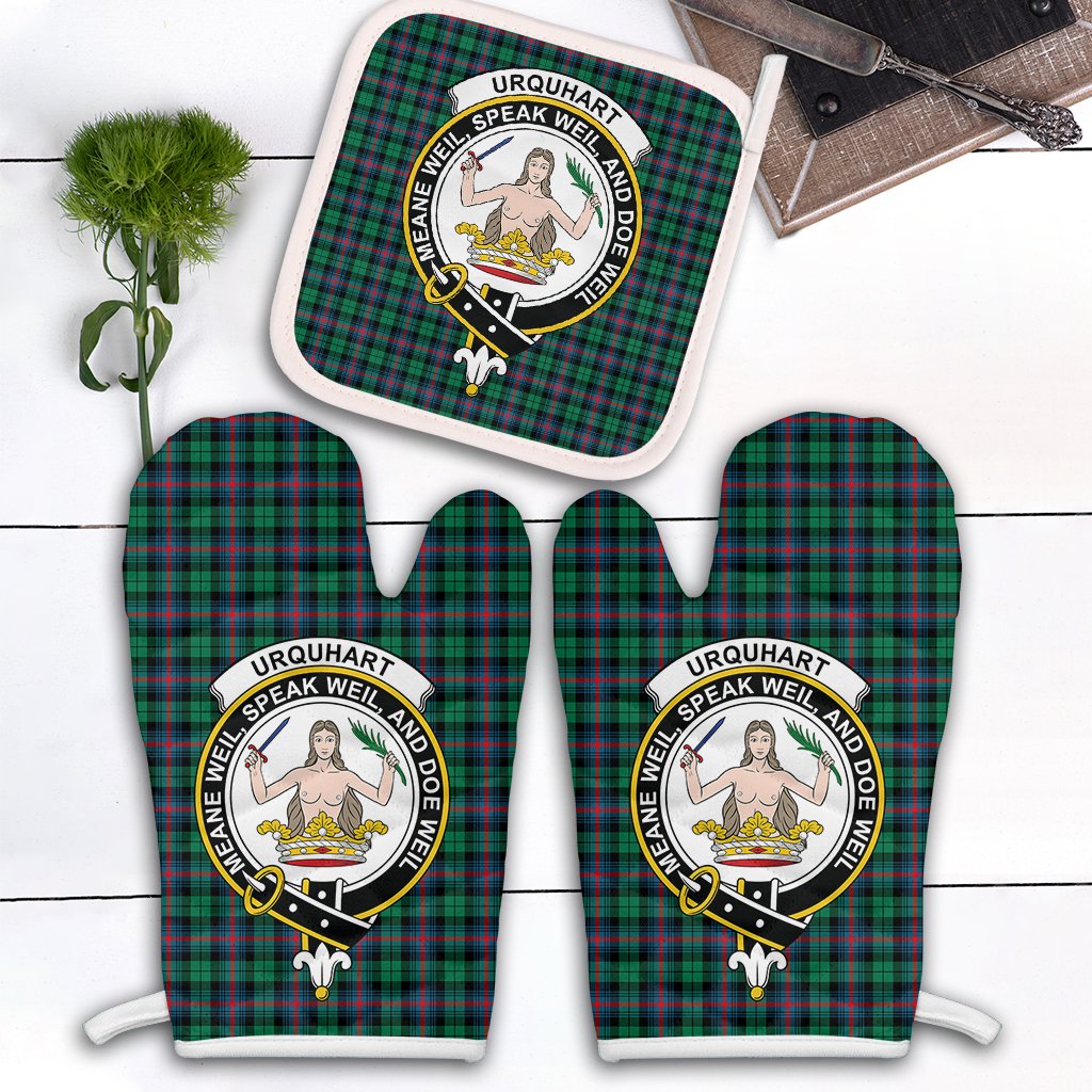 Urquhart Broad Red Ancient Tartan Crest Oven Mitt And Pot Holder (2 Oven Mitts + 1 Pot Holder)