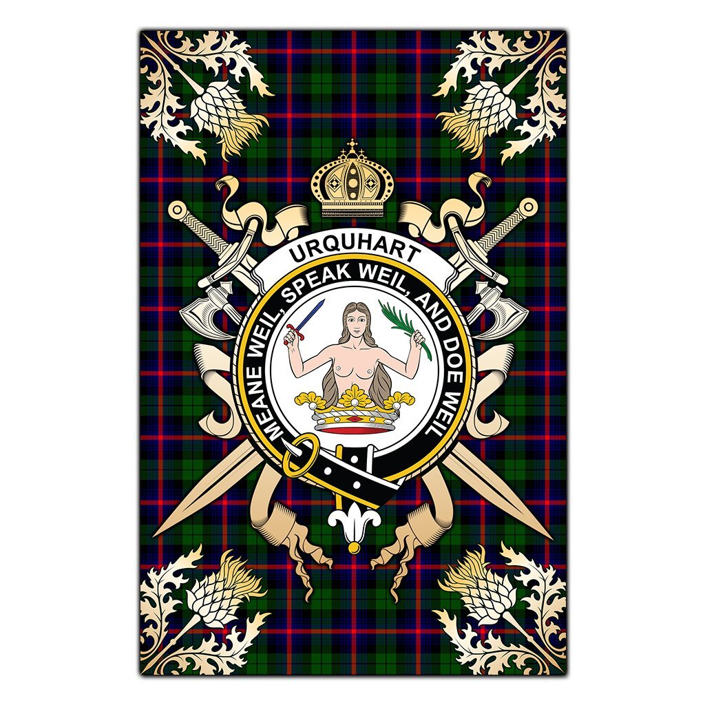 Urquhart Modern Tartan Crest Black Garden Flag - Gold Thistle Style