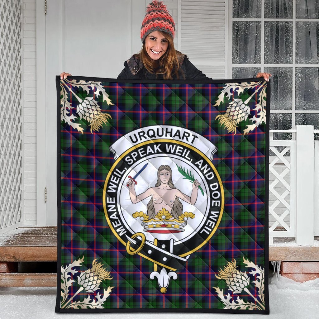 Urquhart Modern Tartan Crest Premium Quilt - Gold Thistle Style