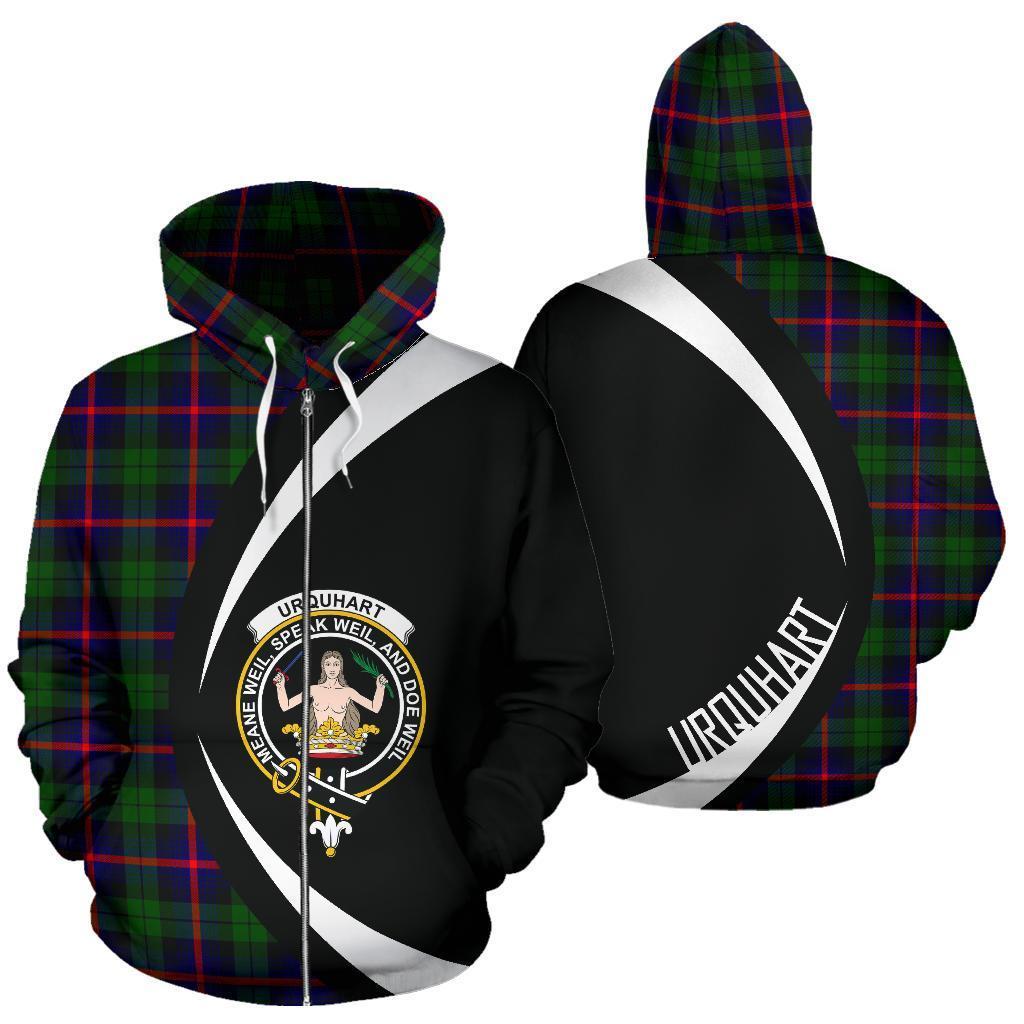 Urquhart Modern Tartan Crest Zipper Hoodie - Circle Style