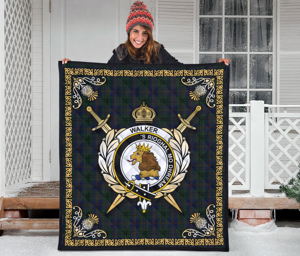 Walker Hunting Tartan Crest Premium Quilt - Celtic Thistle Style