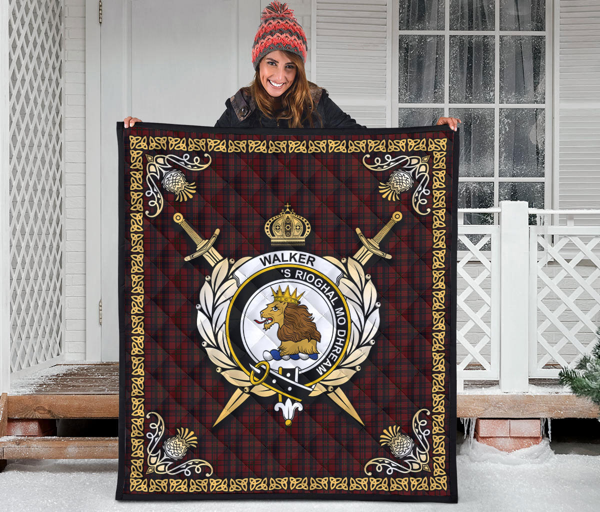 Walker Tartan Crest Premium Quilt - Celtic Thistle Style