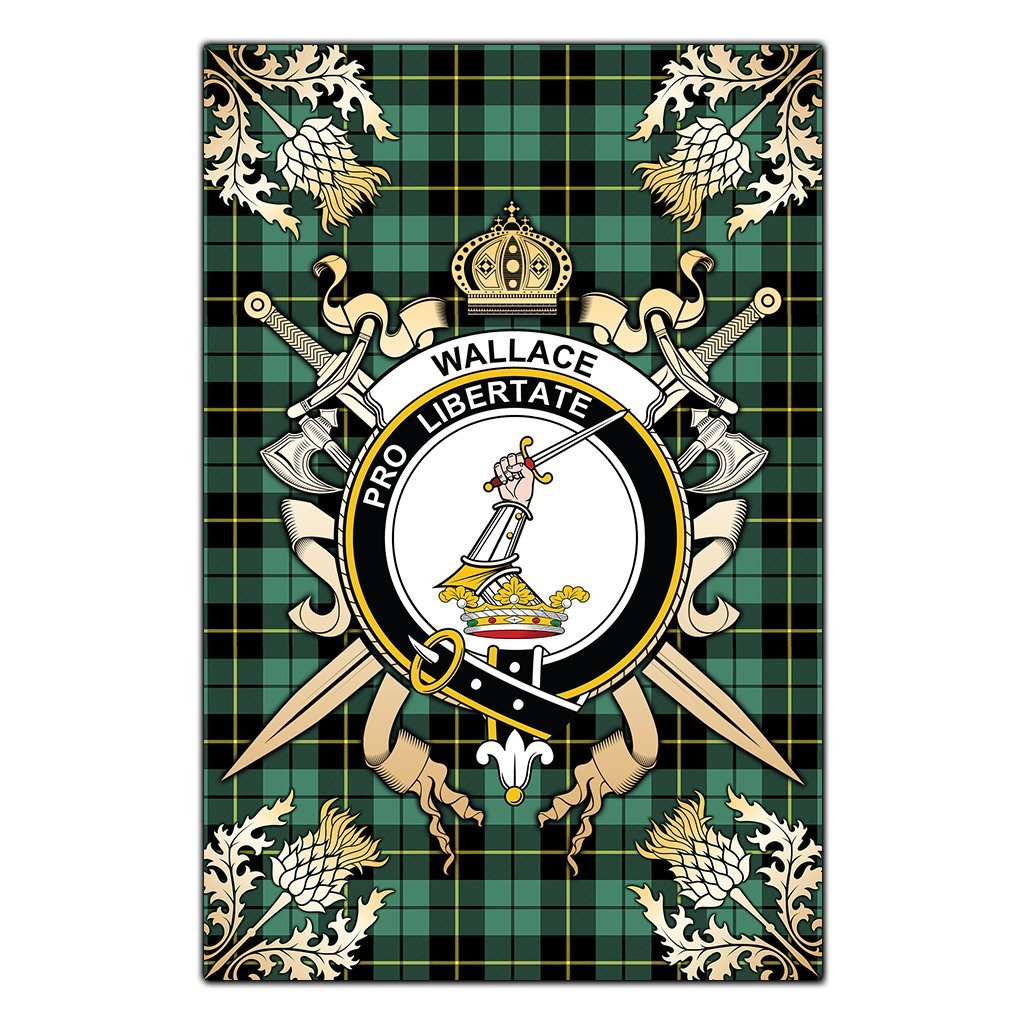 Wallace Hunting Ancient Tartan Crest Black Garden Flag - Gold Thistle Style