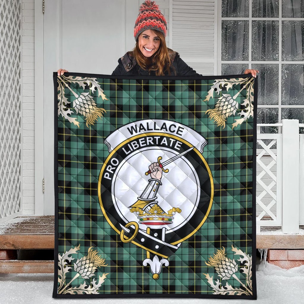Wallace Hunting Ancient Tartan Crest Premium Quilt - Gold Thistle Style