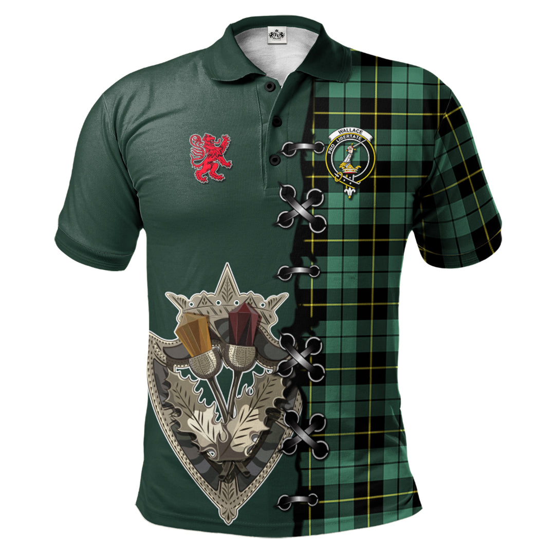 Wallace Hunting Ancient Tartan Polo Shirt - Lion Rampant And Celtic Thistle Style