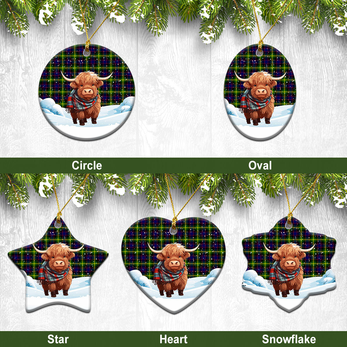Watson Modern Tartan Christmas Ceramic Ornament - Highland Cows Snow Style