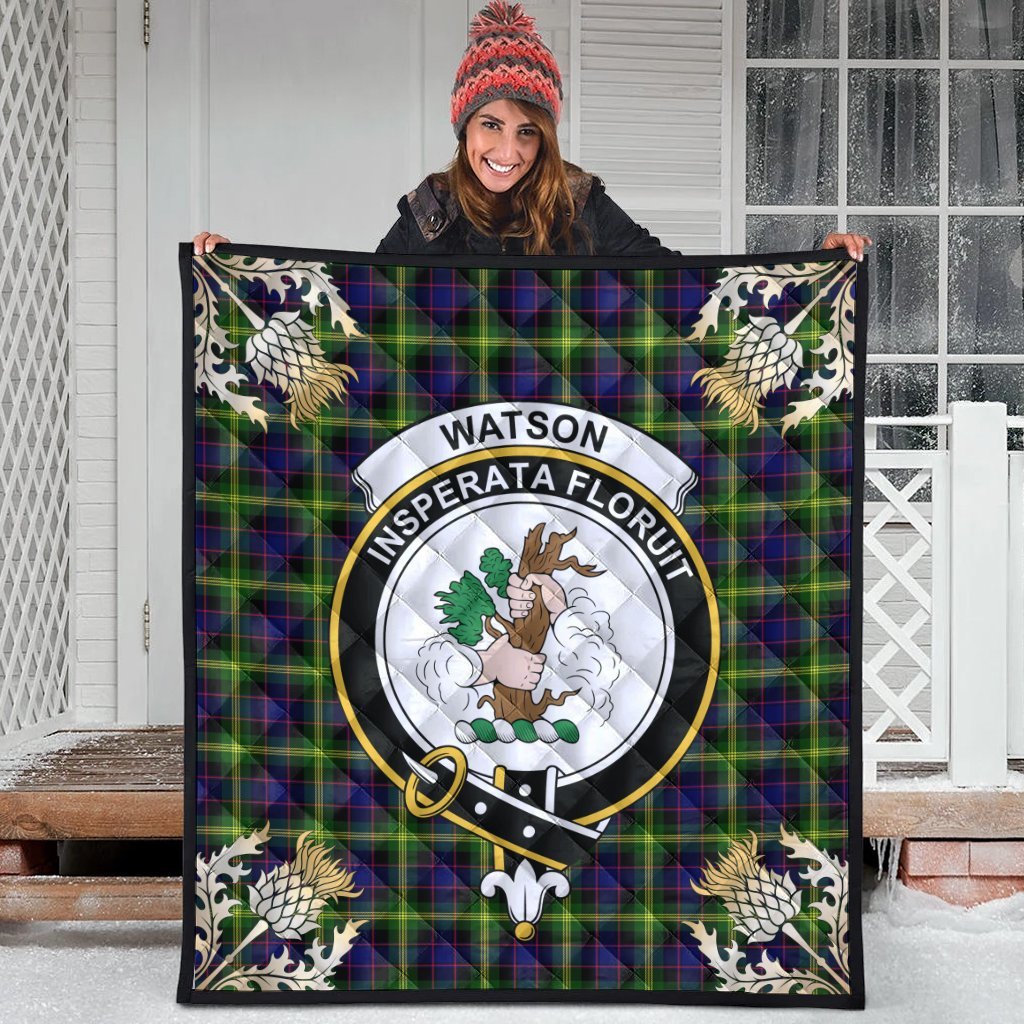 Watson Modern Tartan Crest Premium Quilt - Gold Thistle Style