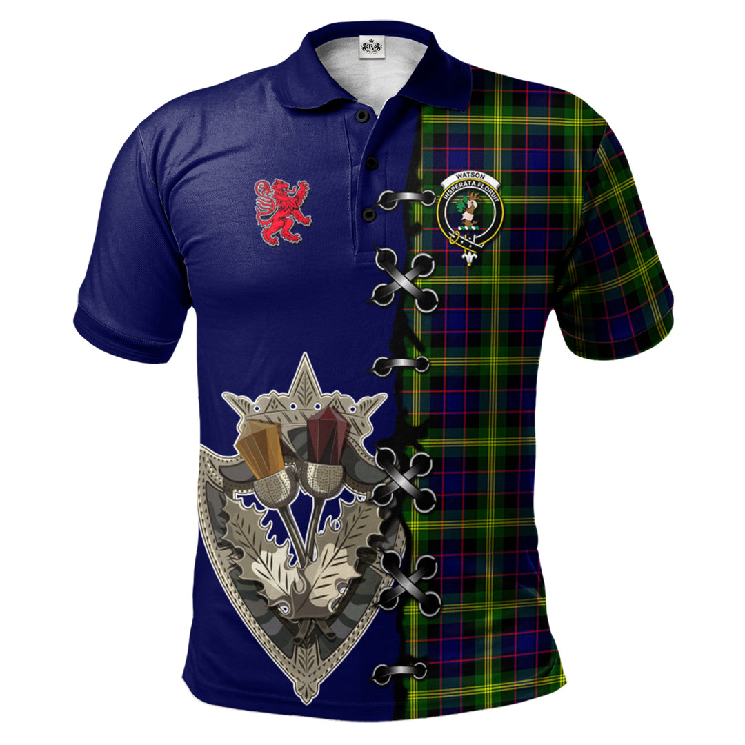 Watson Modern Tartan Polo Shirt - Lion Rampant And Celtic Thistle Style