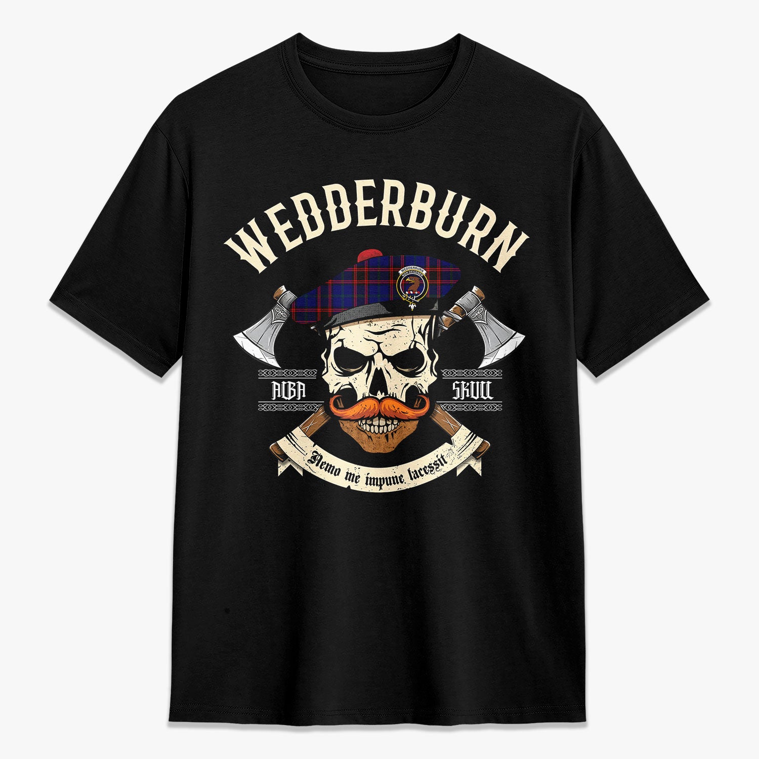 Wedderburn Tartan Crest 2D T-shirt - Alba Skull Style,
