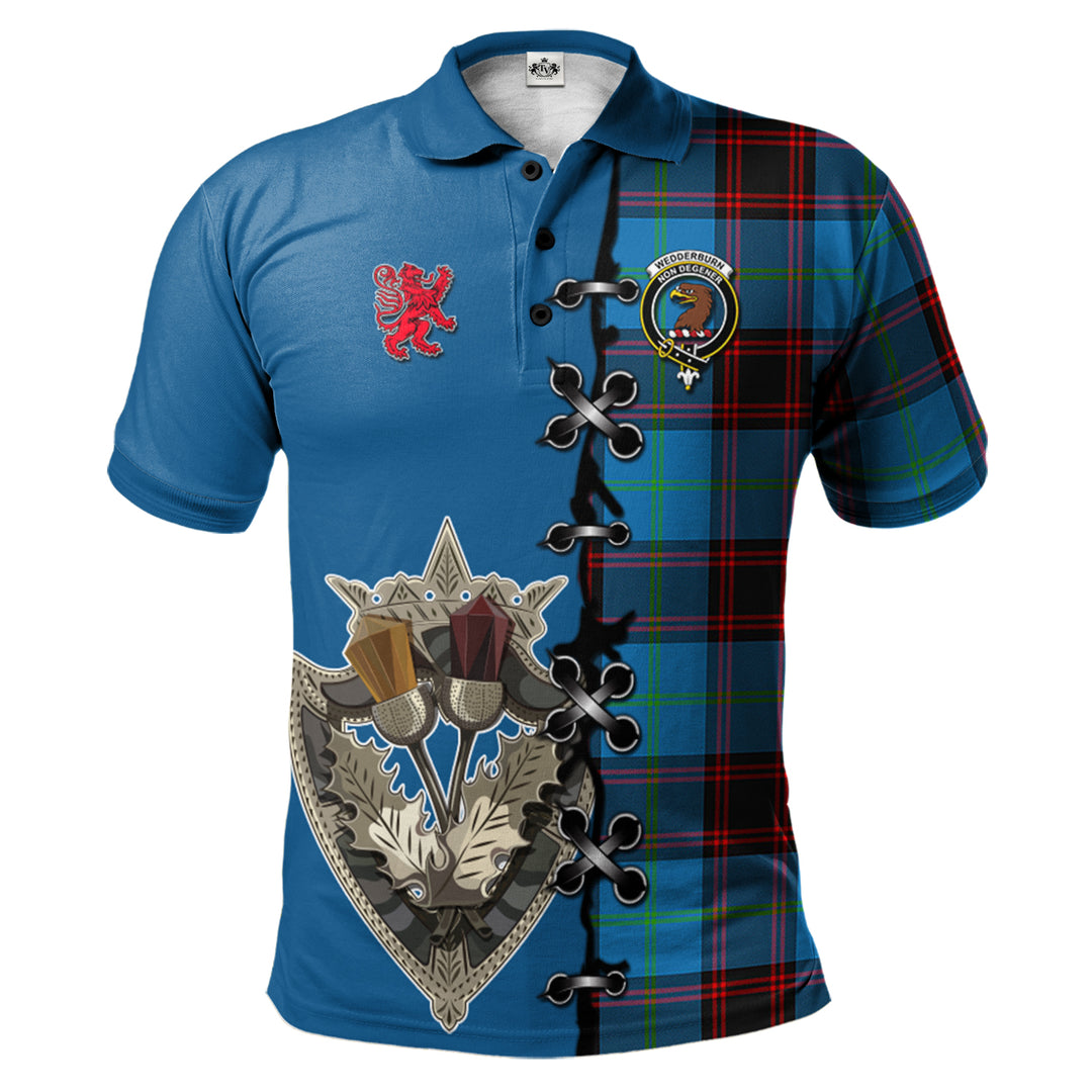 Wedderburn Tartan Polo Shirt - Lion Rampant And Celtic Thistle Style