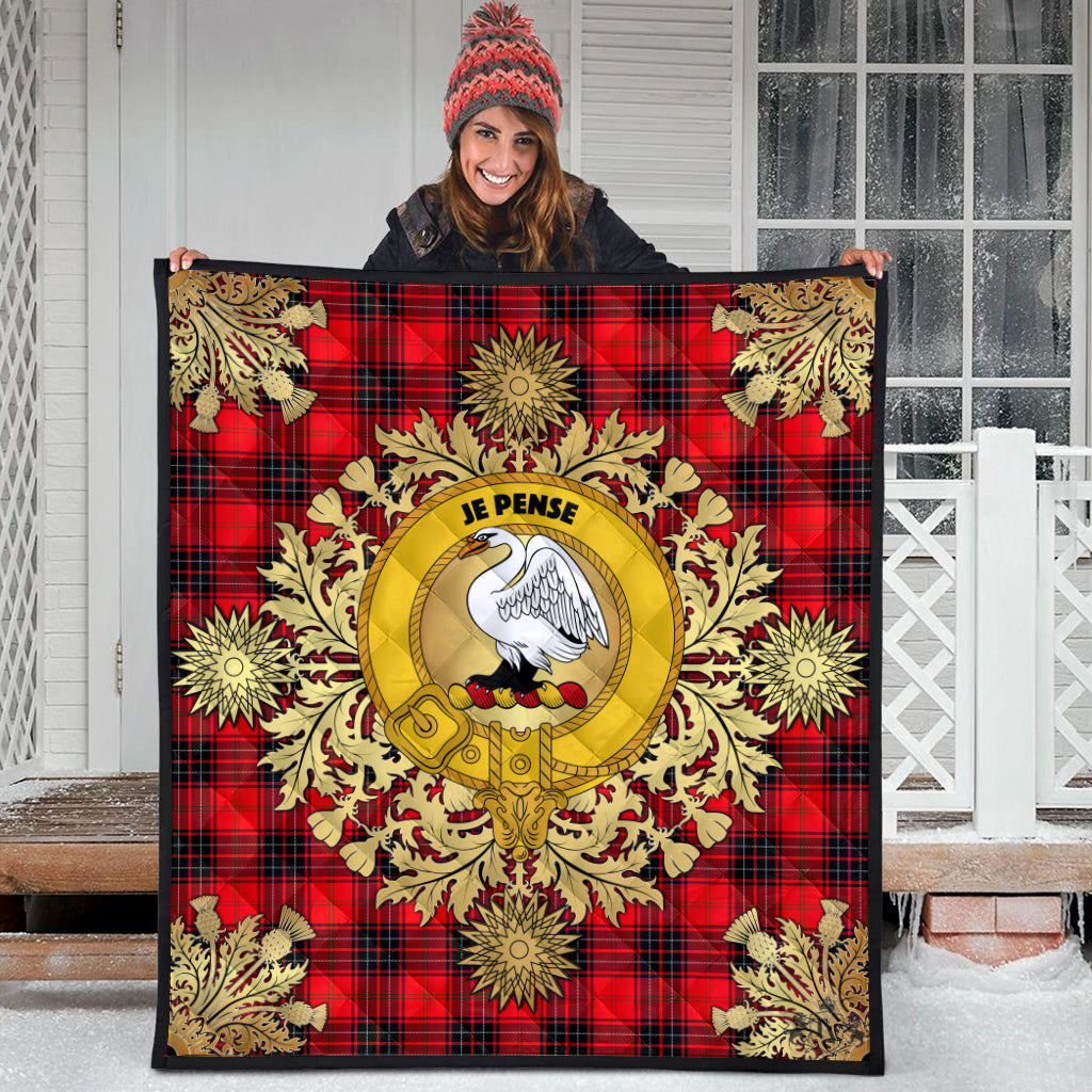 Wemyss Modern Tartan Crest Premium Quilt - Gold Thistle Style