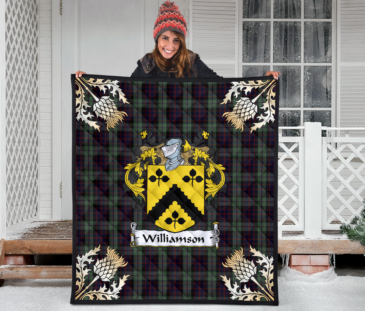 Williamson Tartan Crest Premium Quilt - Gold Thistle Style SP