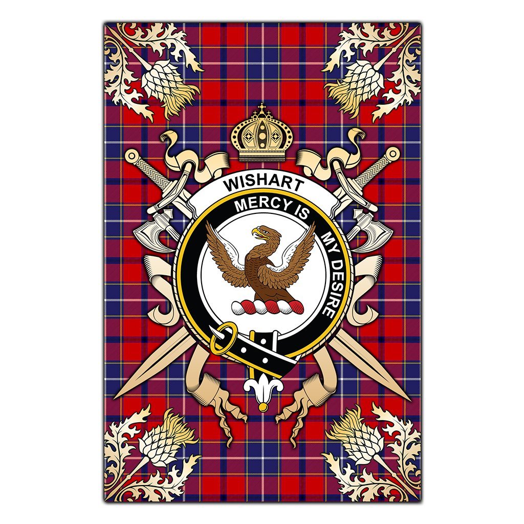 Wishart Dress Tartan Crest Black Garden Flag - Gold Thistle Style