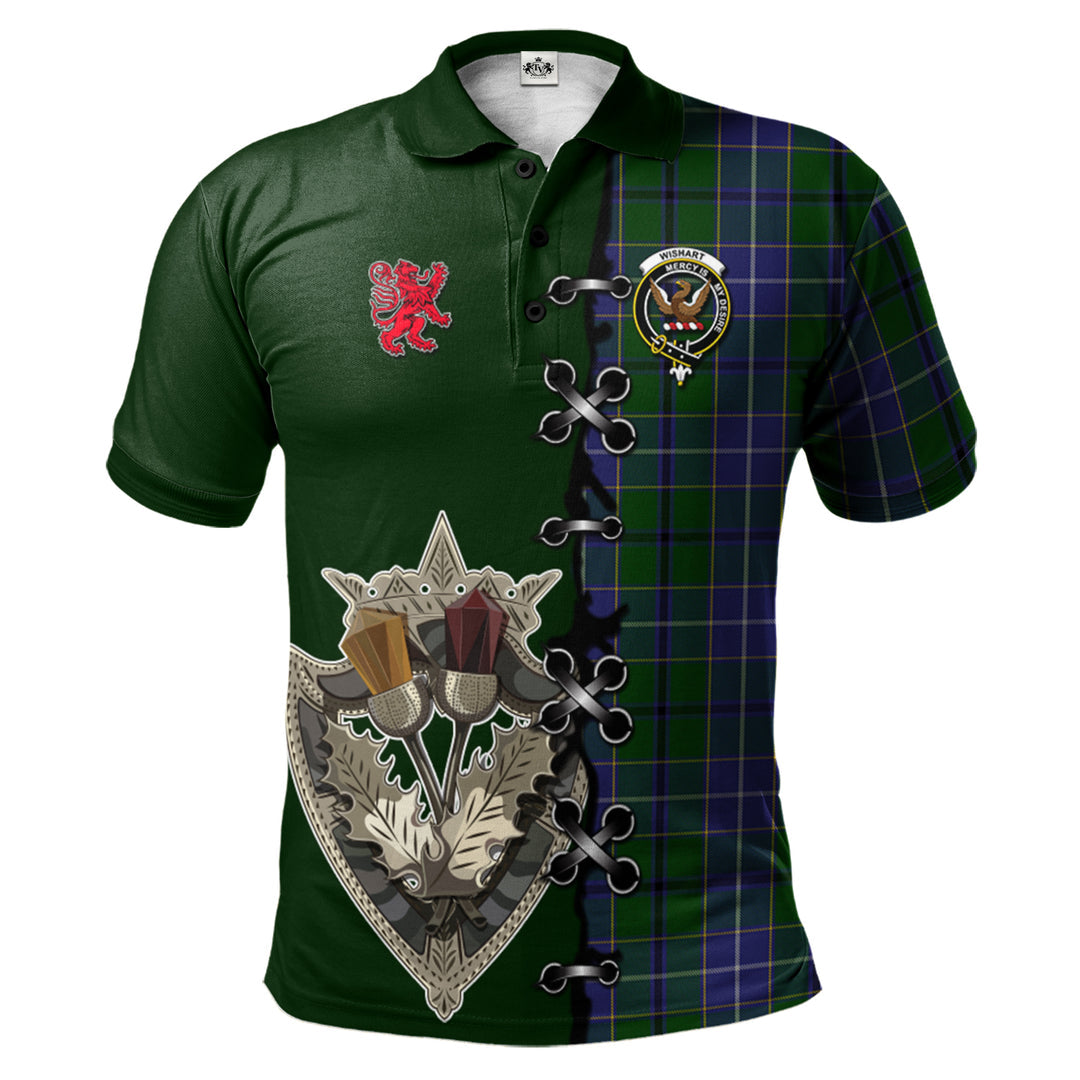 Wishart Hunting Tartan Polo Shirt - Lion Rampant And Celtic Thistle Style