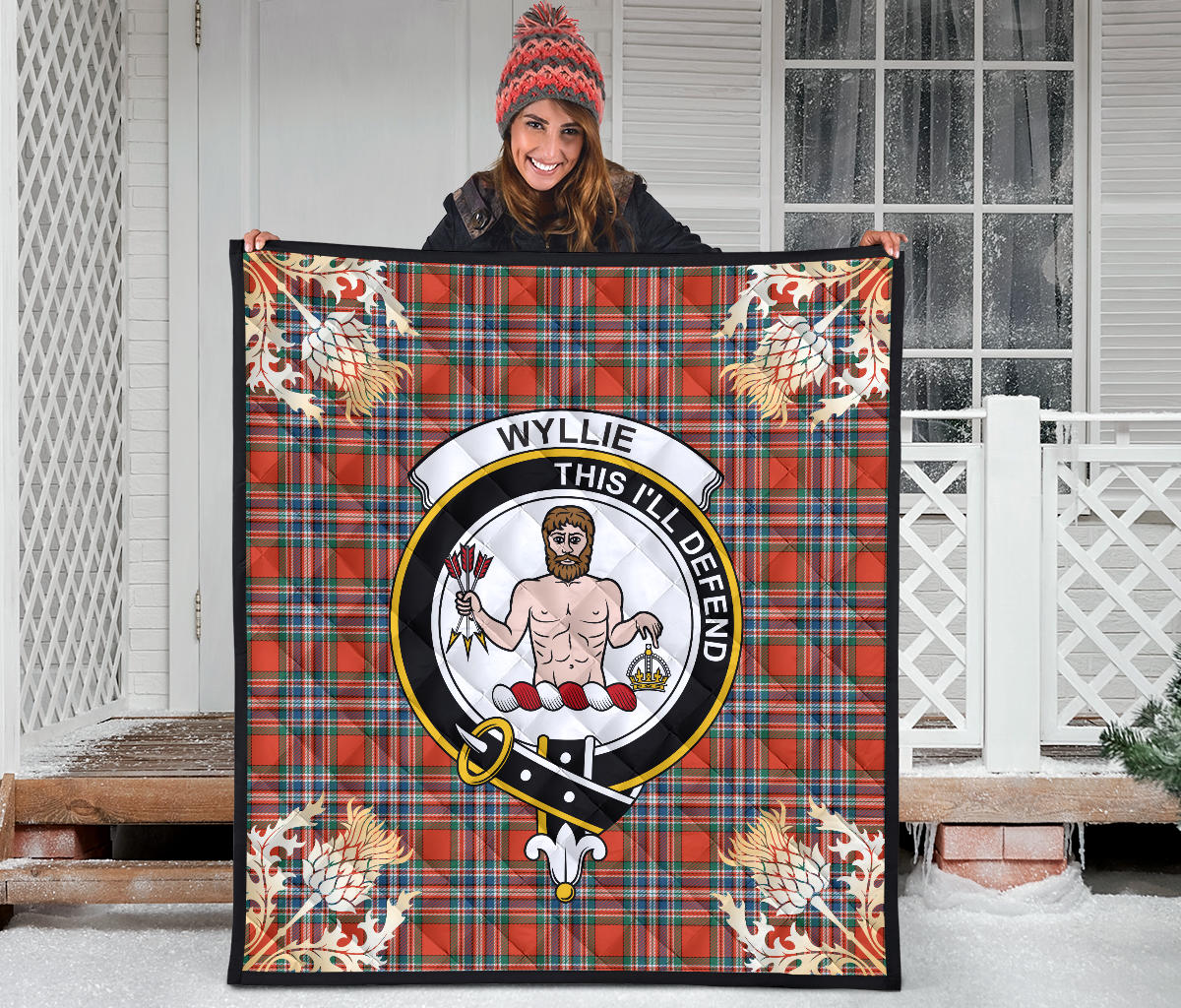 Wyllie Tartan Crest Premium Quilt - Gold Thistle Style SP