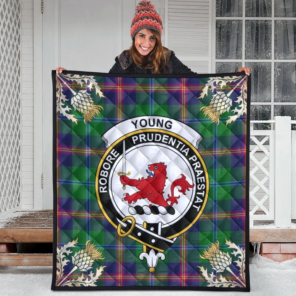 Young Modern Tartan Crest Premium Quilt - Gold Thistle Style