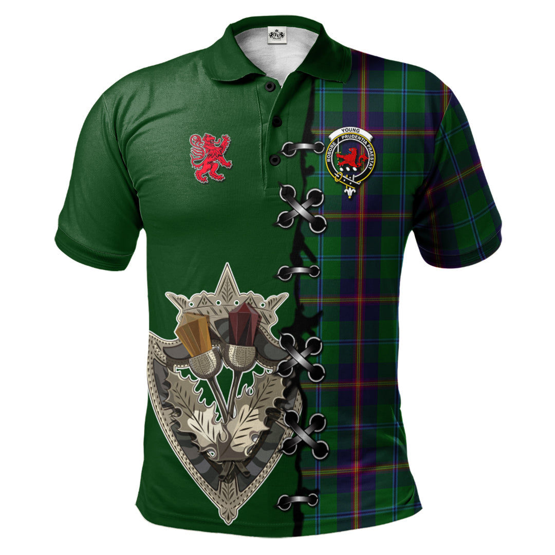 Young Tartan Polo Shirt - Lion Rampant And Celtic Thistle Style